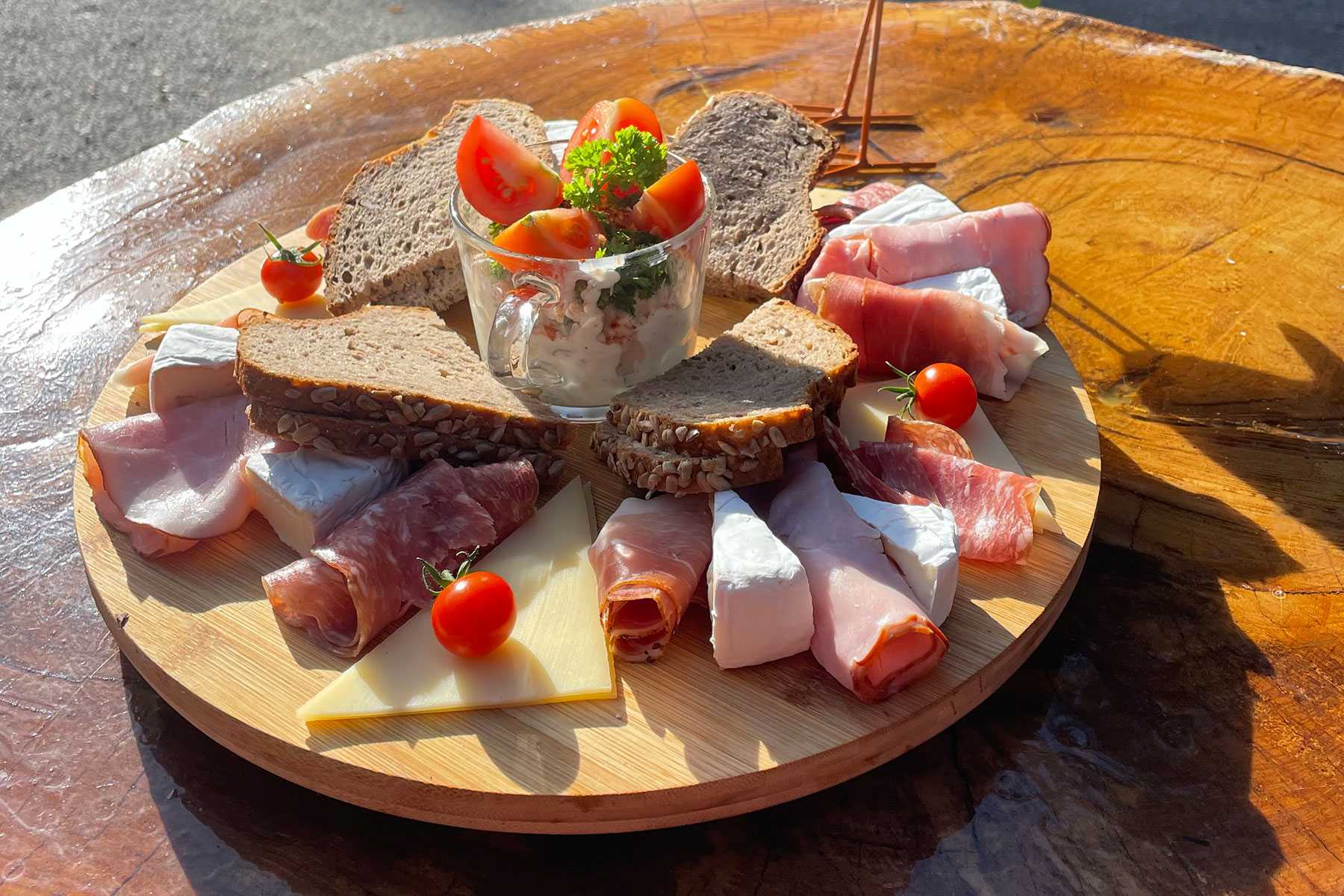 Erleben Sie bei uns ein unvergessliches Vesper, das Genuss und Gemütlichkeit vereint! Unsere reichhaltigen Wurst- und Käseplatten bieten herzhafte Vielfalt, ergänzt durch frisches Obst und abgerundet mit einem verführerischen süßen Nachtisch.